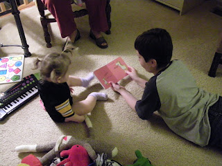 Mdx kept running into cousin David's room looking for toys. He was very generous and shared with her. He even got out a giant basket of stuffed animals!