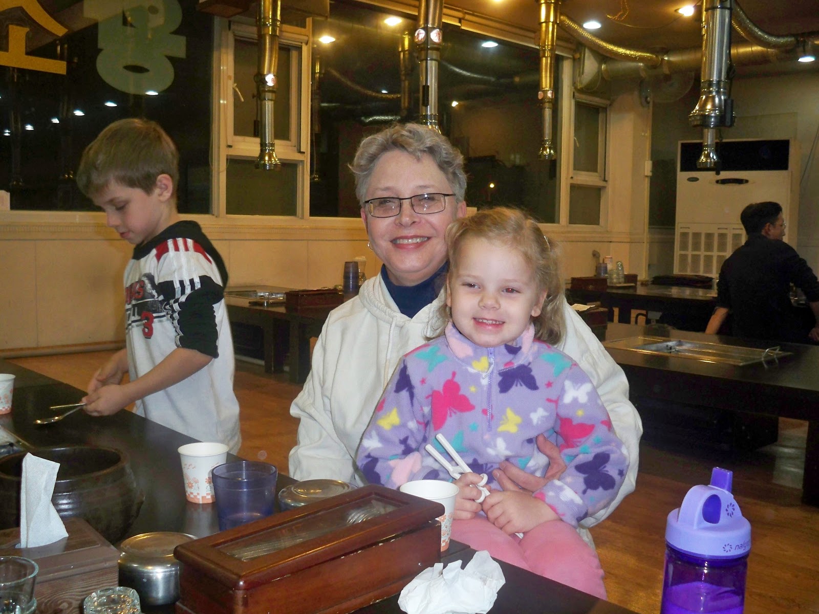 Maddox didn't eat much at all- except for the snacks that I had in my backpack. I didn't really expect her to eat the Korean food, it was more for the experience than for anything else. The whole meal was so cheap- 10 people ate for less than 40 dollars total!