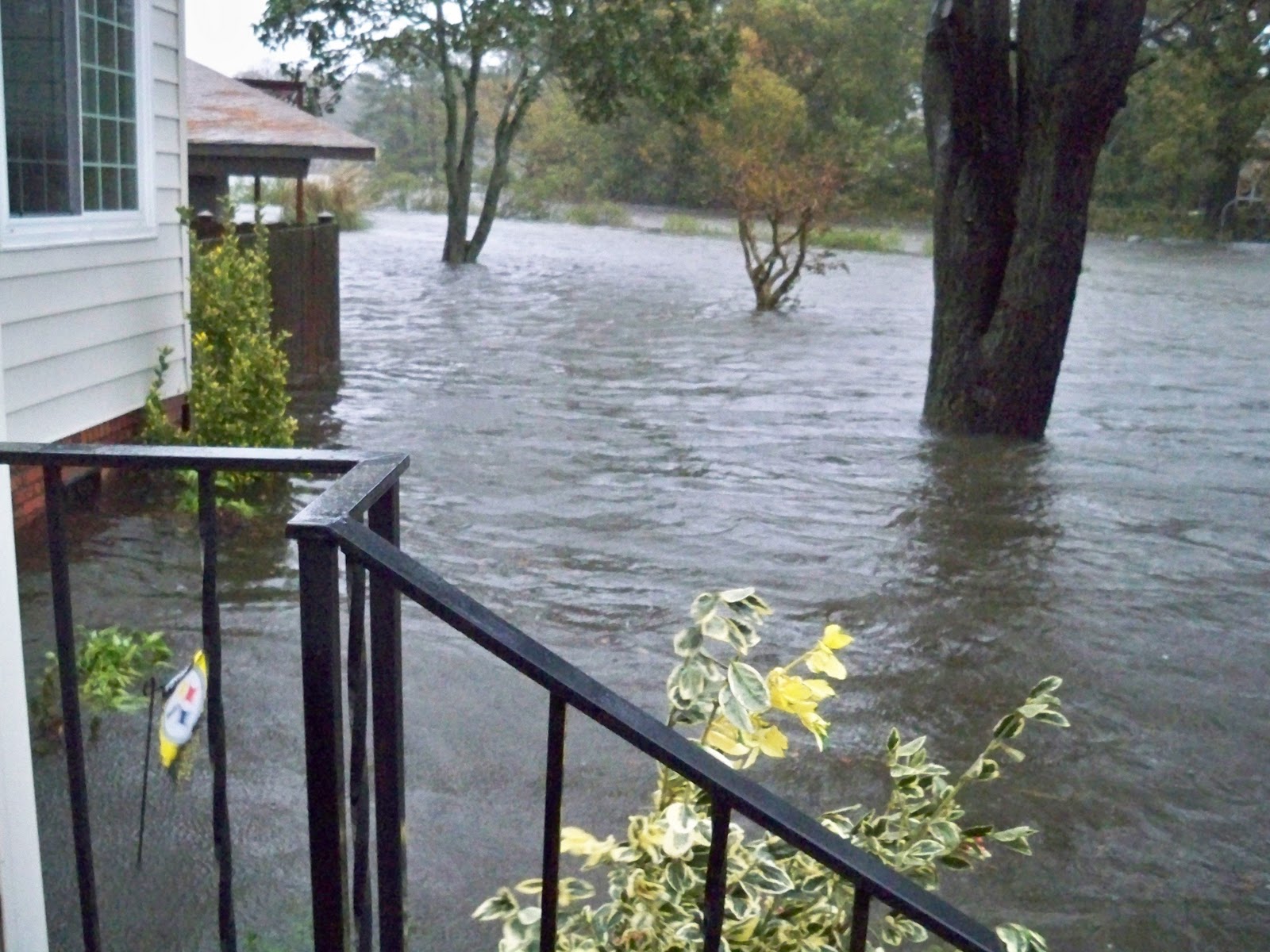 Within a week of Marshall returning home from his deployment a Nor'Easter blew in. You have to keep in mind that I had moved to this house while he was gone. He had never even seen it until he returned, because we didn't know our old house was being torn down until after he left. Once I found out we had to move, I started looking off base and found this house. The house was charming and seemed like it would be a great place to live, but little did we know that there were about 15 maintenance issues and a terrible property manager to deal with- but that's a whole 'nother story!! Our street had flooded when it rained hard, and I had asked the property manager if the house flooded and he said NO....but we had NO IDEA what we were in for as far as flooding. With our house just 1 block away from the Historic Hampton Roads, where there battle of the Monitor and the Merrimac was fought....let's just say we should have evacuated.